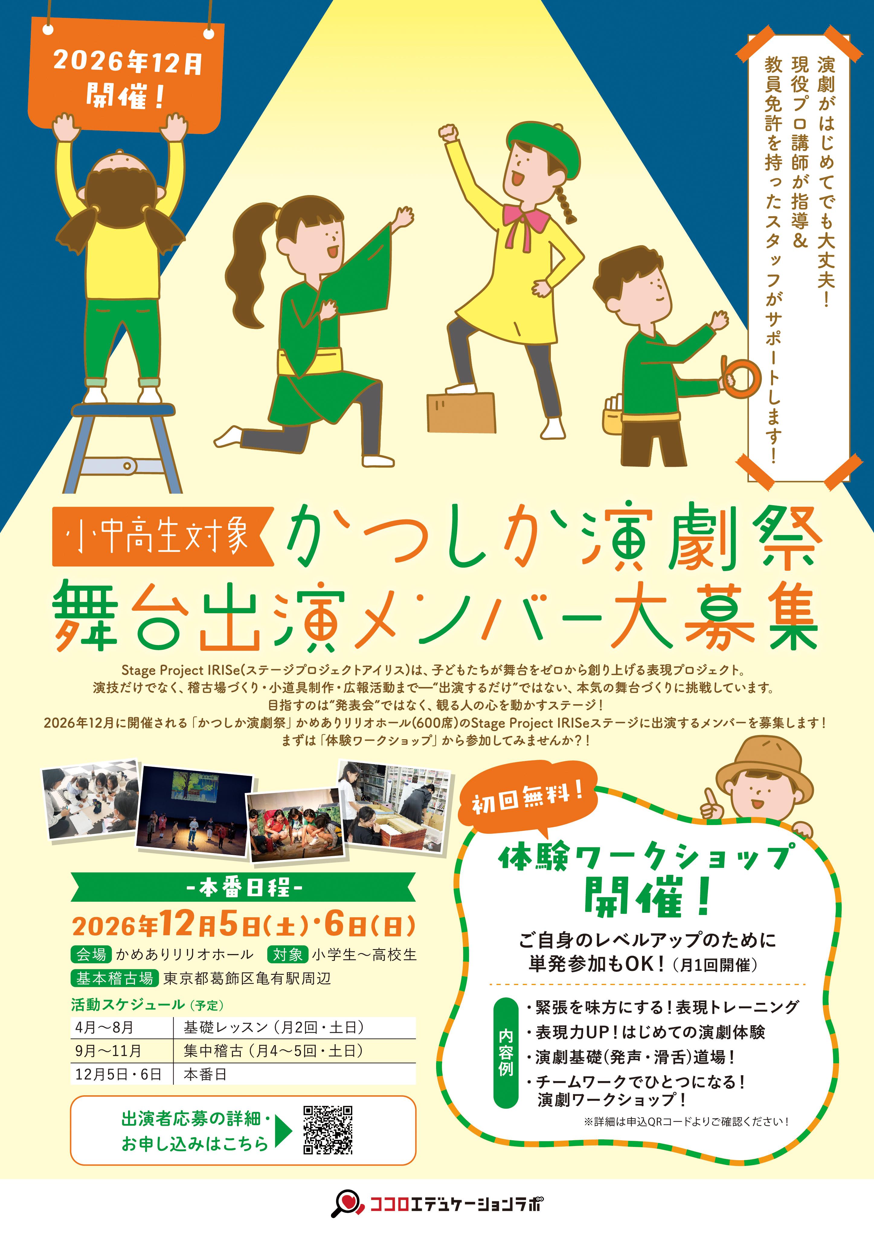 小学生~高校生が“表現する側”としてだけでなく、 “創る側”として舞台に関わるプロジェクト。